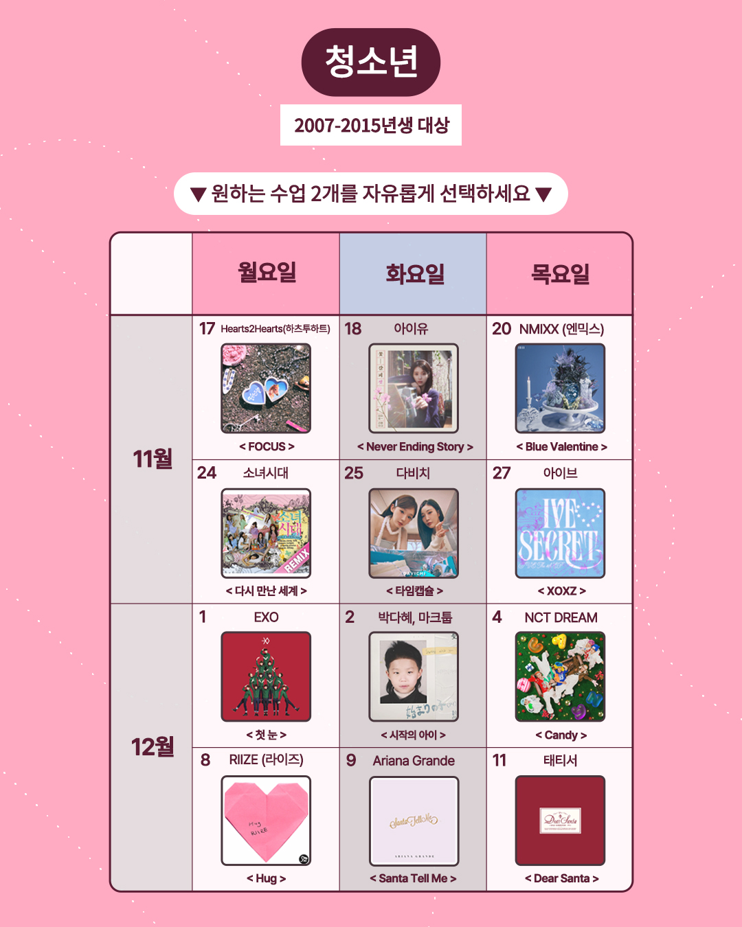 ※위 시간표 중 2개의 수업을 선택해주시기 바랍니다